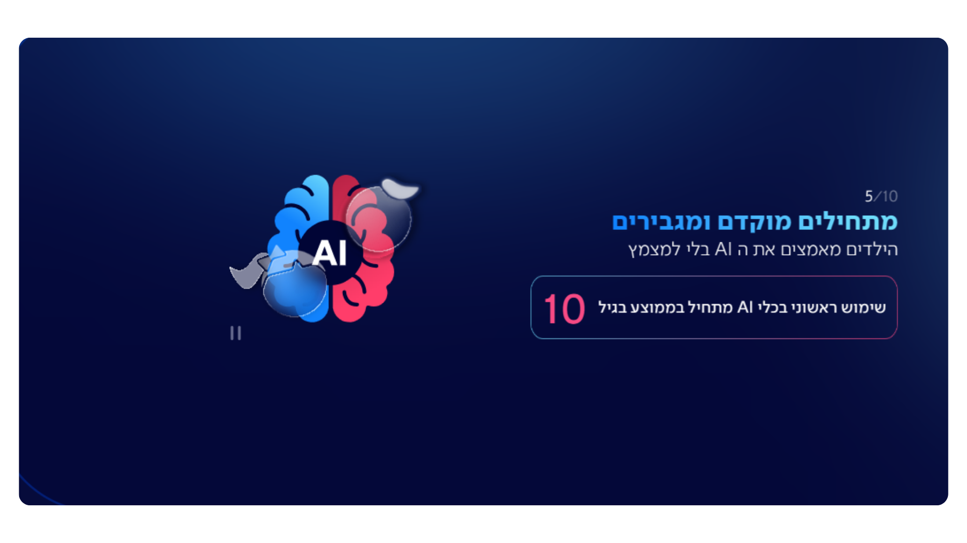לפי ממצאי הדו"ח, גיל קבלת הסמארטפון ראשון הוא 6.2 בממוצע, וגיל השימוש הראשון בכלי AI עומד על 10.1 בממוצע. בקרב ילדים בני 7–12, 57% משתמשים ב-AI, נתוני אימוץ שממחישים “דור AI” פעיל עוד לפני גיל חטיבת הביניים.