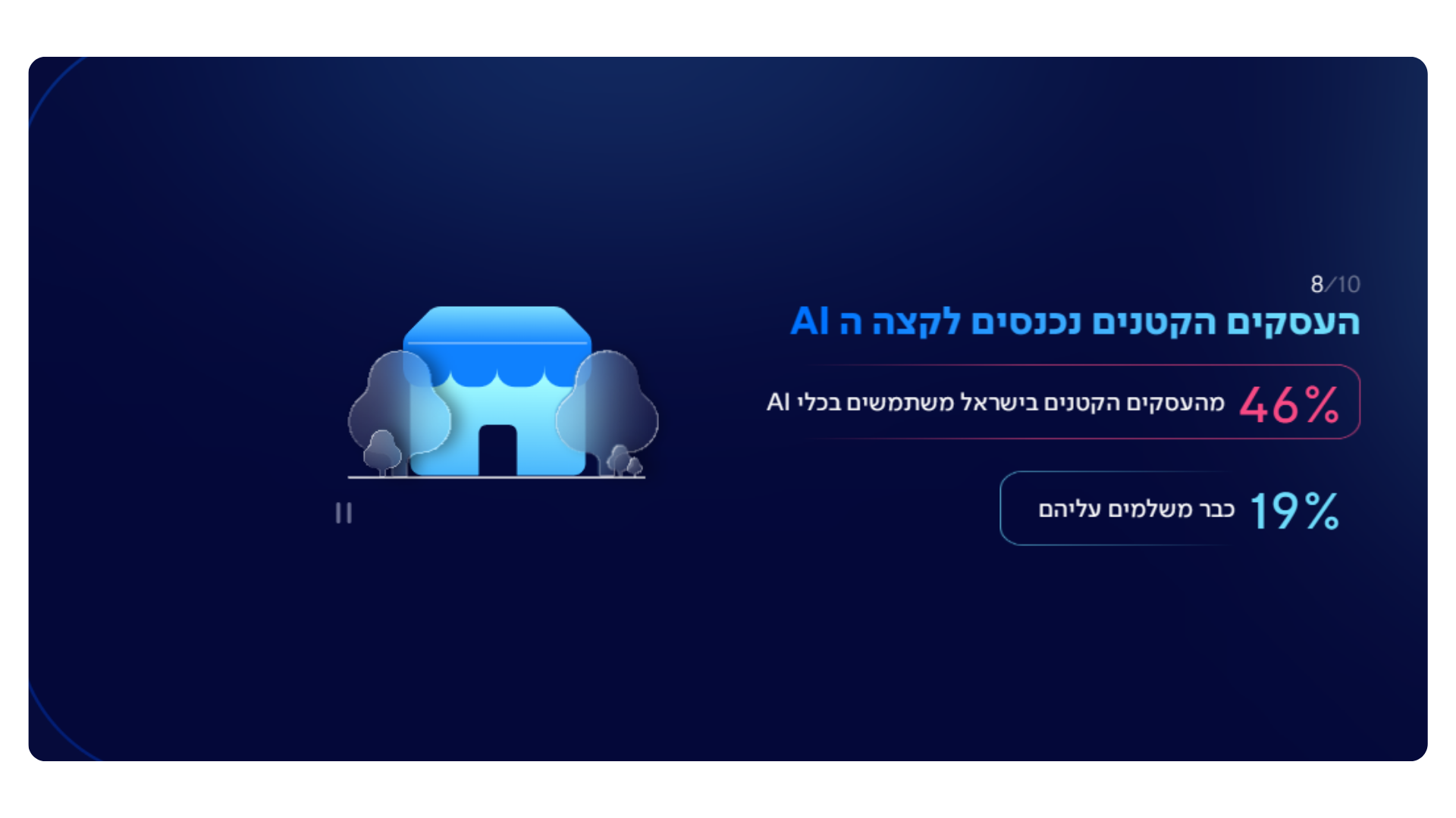 קרוב למחצית מהעצמאים בישראל (46%) עובדים עם AI וכ- 18% משלמים עליו. נוצר פער ערך ברור בין משתמשים ללא-משתמשים. מי שכבר משלבים AI בעסק מדווחים ביתר שאת על חיסכון בזמן (58% לעומת 31% שלא משתמשים ב-AI) ועל שיפור בשירות הלקוחות, בזמינות ובהיקף הפעילות (37% מול 24%).