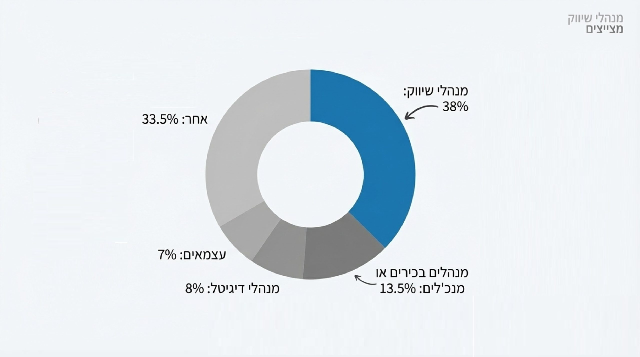 מבין המשיבים, 38% הם מנהלי שיווק, 13.5% מנהלים בכירים או מנכ”לים, 8% מנהלי דיגיטל ו-7% עצמאים. התעשיות המיוצגות מגוונות, עם דגש על משרדי פרסום (12%), נדל”ן (10%), מוצרי צריכה (9%) והייטק (8%).