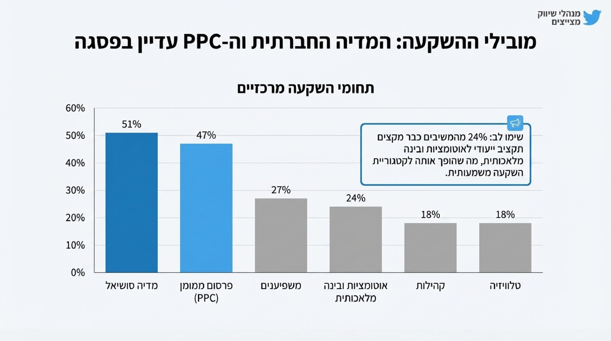 • 37% צופים ש-AI תבצע 30%–50% מעבודת השיווק