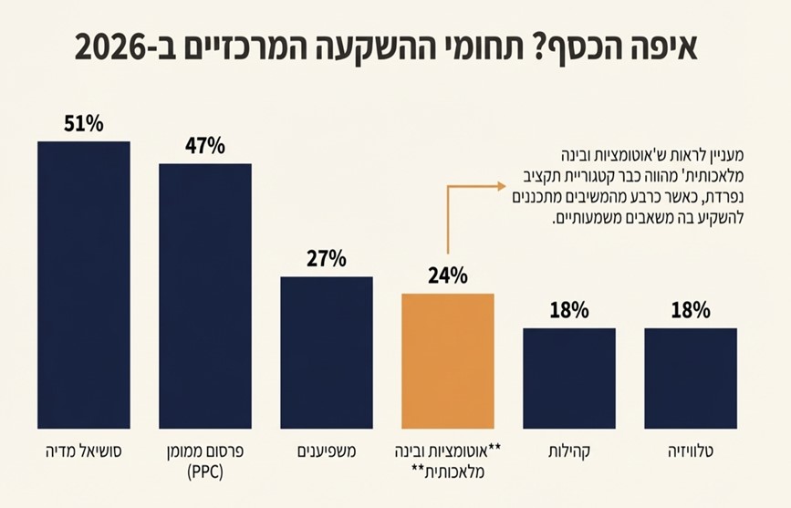 מעניין לראות ש"אוטומציות ובינה מלאכותית" כבר מהווה קטגוריית תקציב נפרדת, כשכרבע מהמשיבים מתכננים להשקיע בה משאבים משמעותיים.